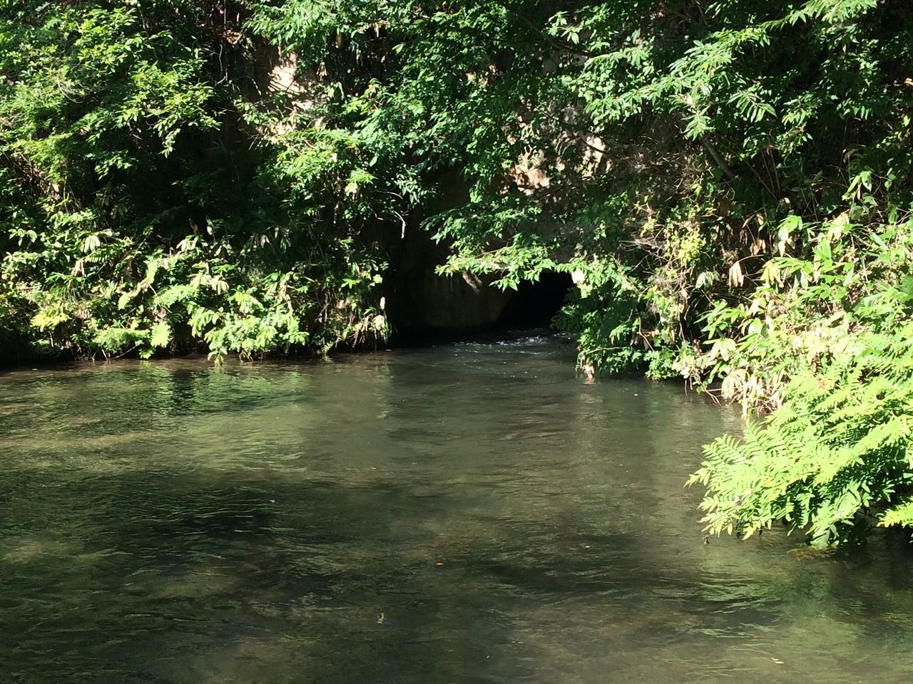 飯盛山の白虎隊隊士の墓の麓にあるさざえ堂から、もう一段下にある厳島神社の境内にあります。元々猪苗代湖から農業用水を引くための用水路で、地形的な問題からトンエルを掘って用水を通しています。すでに幕末にはこの用水路が完成しており、戊申戦争時に白虎隊隊士がこの洞穴を逃走路として使用したことで知名度が高いです。東南アジアのタイでの洞窟事故時期であったため、穴の中を覗くのもちょっとどきどきしました。