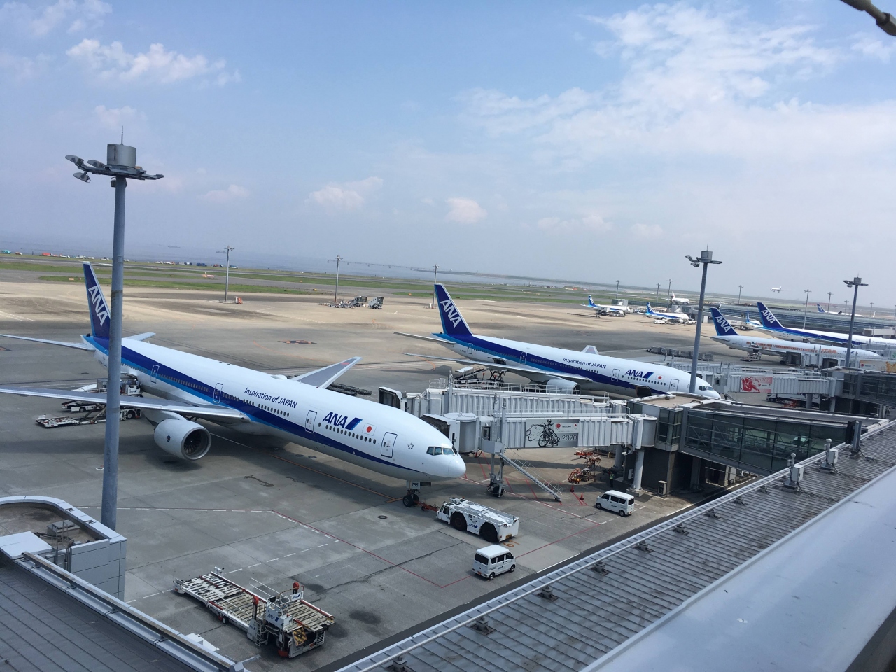 羽田空港の第2旅客ターミナルにある展望デッキ。いまは工事をしているので、一部は閉鎖されています。夜は床が青くひかって夜景と相まって実にきれいな展望デッキです。入場も無料出来ますし、ゆったり出来る椅子などもここかしこに配置されていてとてもいい場所です。今の時期は昼間は暑いというか熱い感じですけど。