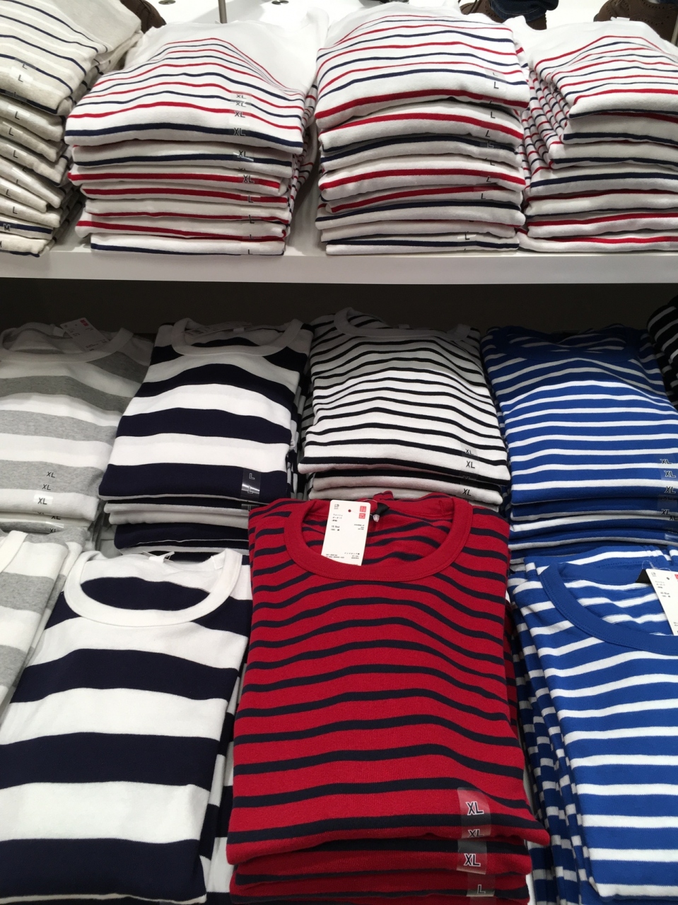 羽田空港第1ビルにあるユニクロ。ここはかなり小さいお店で、国内線ターミナルの到着口にあるので、これから東京に行く人がちょっとした着替えを買うようなお店。そのせいか、お店の面積の割には男性の商品が多く売っていました。