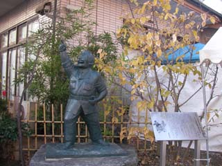 亀有駅から環状七号線を渡って少し南に進むと江戸時代の亀有村の鎮守の亀有香取神社があり、境内の参道の先の拝殿の横には、こちら葛飾区亀有公園前派出所の両津勘吉の銅像があり、「両さんと歩く亀有マップ」が設置してあります。