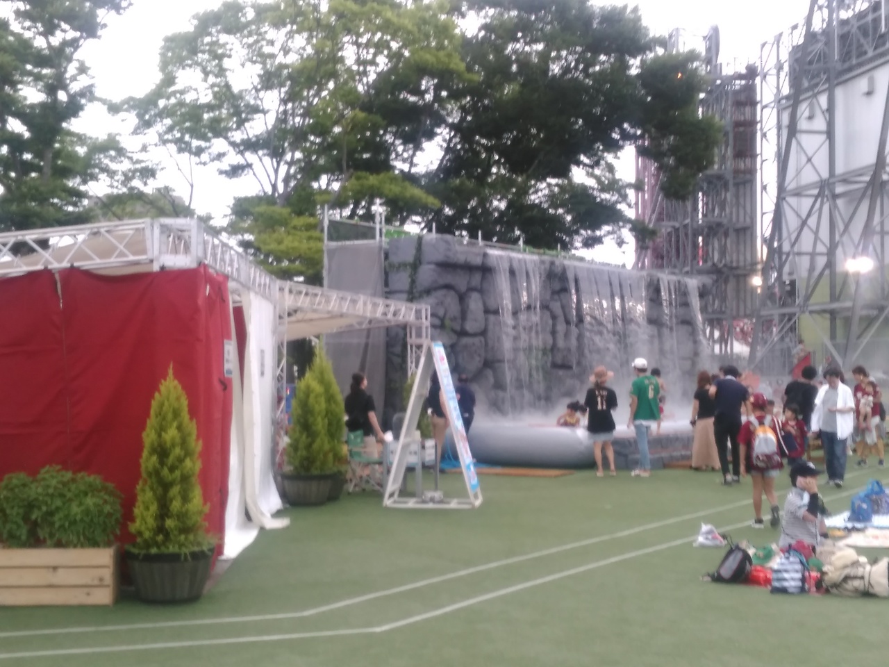 今は、楽天生命パーク宮城に名前が変更になっています。今の季節、納涼夏まつりが行われています。レフト側の場外にあるスマイルグリコパークでは、観覧車やメリーゴーランドに加え、巨大な滝やお化け屋敷、キンキンに冷えている足湯、じゃぶじゃぶプール等、子供が楽しめる物がいっぱいです。