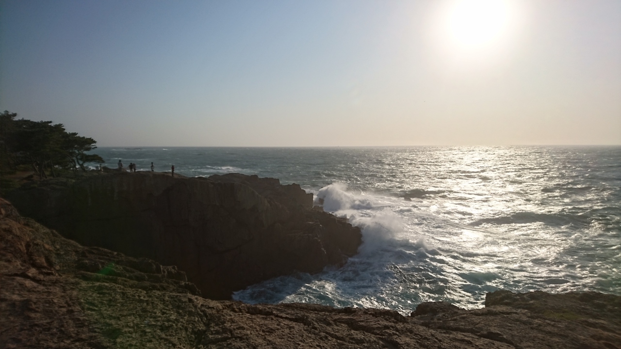 ゴールデンウィークに日御碕海岸に行きました。このときは夕刻だったので美しい夕日を見ることができました。しかし、日御碕海岸は島根半島の最西端にあるので常に強い風が吹いていました。また、海岸に打ち付ける波が大きな水しぶきを上げていたので迫力がありました。