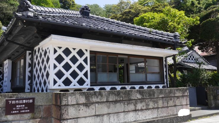 なまこ壁と伊豆石造りの建築様式を用いた大正7年築の民家で内部は自由に見学することができる。