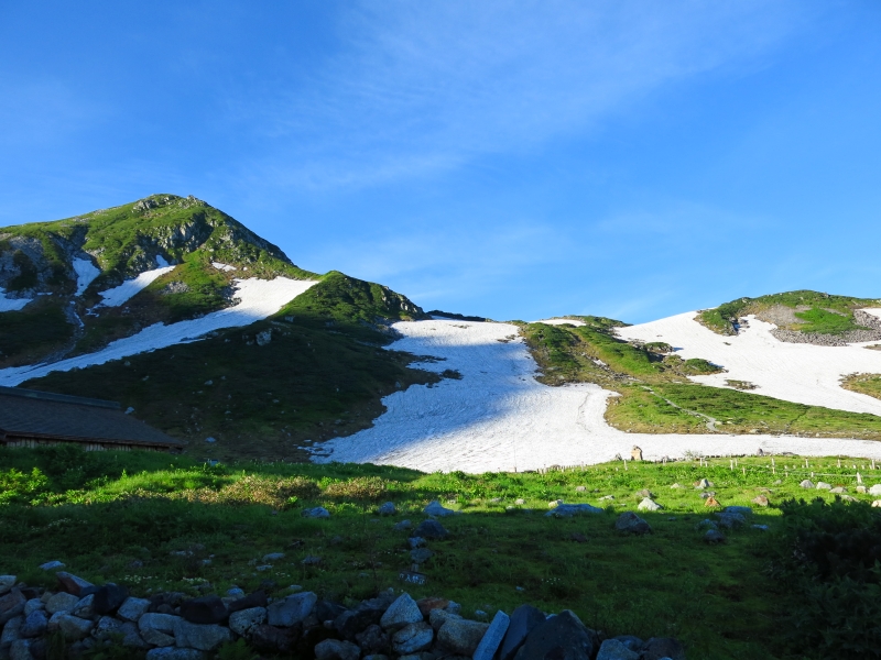 個人的には立山連峰の中で最も雄々しい山容だと思いますが、山頂~山頂直下はハクサンイチゲやチングルマが咲き乱れる美しいお花畑になっています。