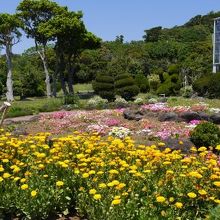 有料の施設ではないので規模は大きくなく、すぐに見終わってしまうが、色とりどりの花々が咲いており、青空のもときれいな花を鑑賞できた。