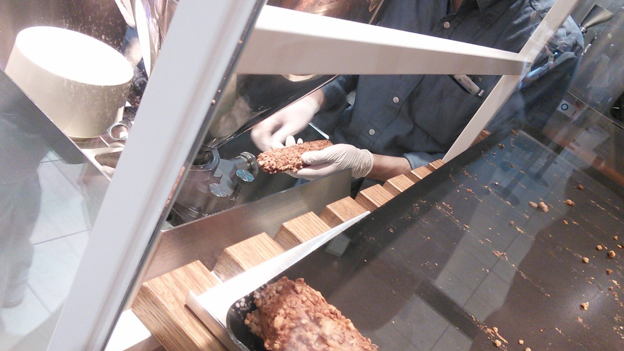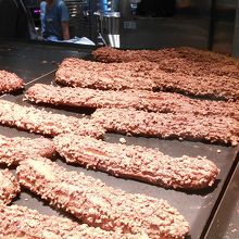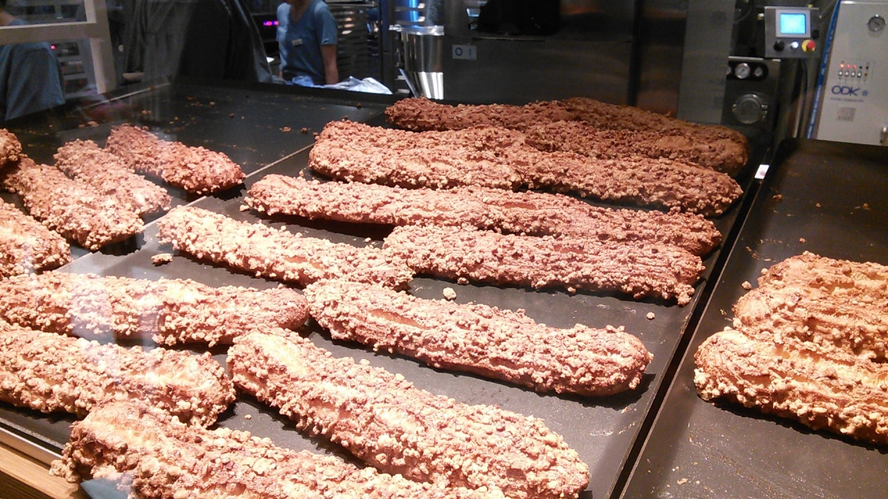 ダイスアーモンドをまぶして焼いたクロッカン生地にこだわっているそうです。その場で機械でクリームを詰めてくれますが、量が少なく、北海道の会社だけに生クリームの比率の高いカスタードクリームで卵黄の味がせず、シュークリームを食べているというよりは、何か別のスティック菓子を食べているといった感じで、期待外れでした。