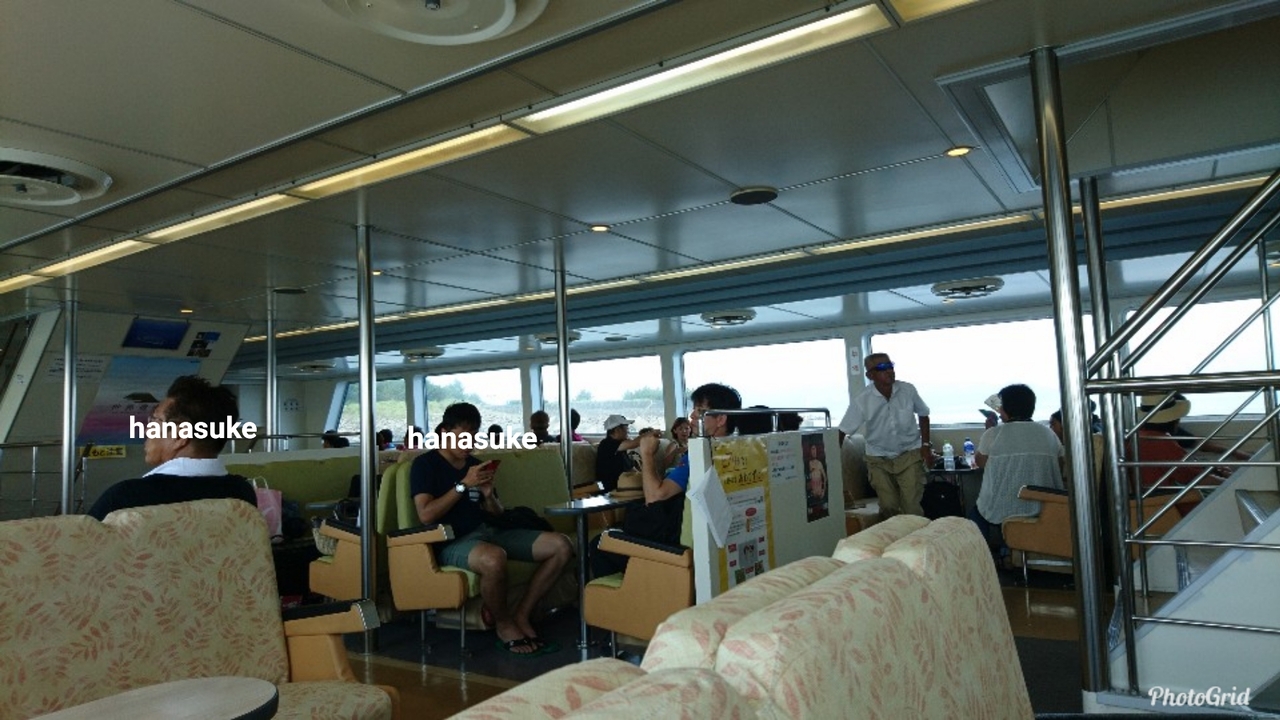 外を見てるとトビウオ(たぶん)が飛んだりして、それを探したりしてるうちにあっという間に着いてしまいます。