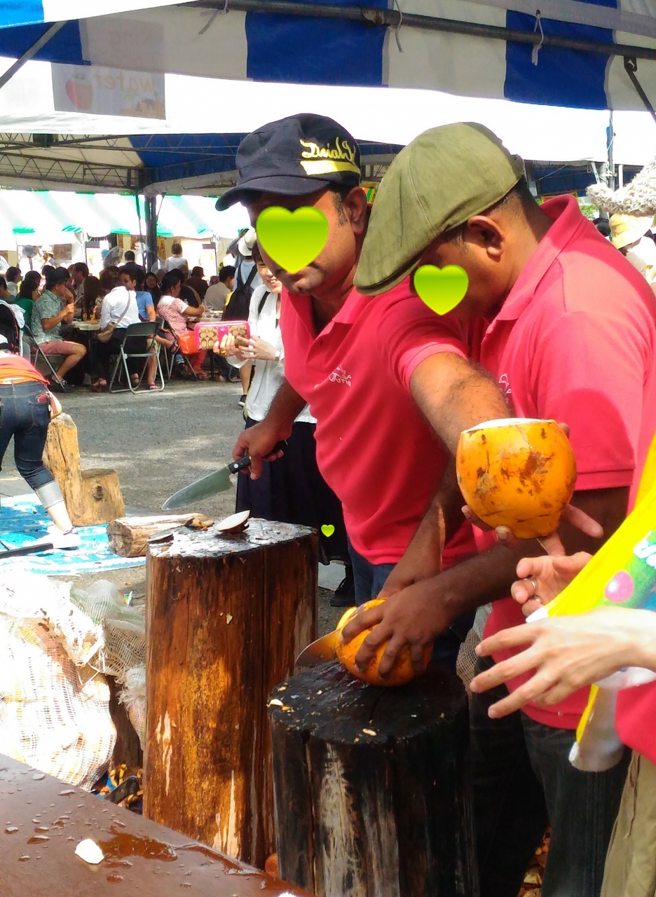 生ココナッツジュースをその場で果実を割った状態で頂けたり、アーユルベーダマッサージも出来ました。