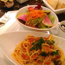 平日はお得なランチがあります。地下なので窓はなく、明るくはないです。席もそれほど広くはないですが、ペニンシュラで頂けるランチとしてはお手頃で、もちろんサービスもいいです。アイスコーヒーも大きなグラスで満足できます。