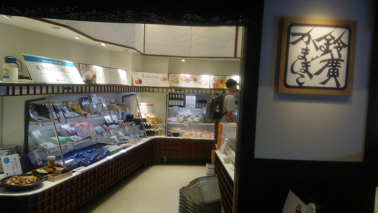 芦ノ湖畔海賊船箱根港のそばにある茶屋本陣畔屋の1階にあるかまぼこ屋さん。遊覧船乗り場にはお店がないのでここは便利。有名な鈴廣のお店だが、かまぼこ類の試食が多く、試食のためにワサビまで準備されてるという念入りさ。