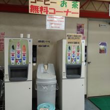 1階には無料給茶機があって緑茶やコーヒーが飲めます。
