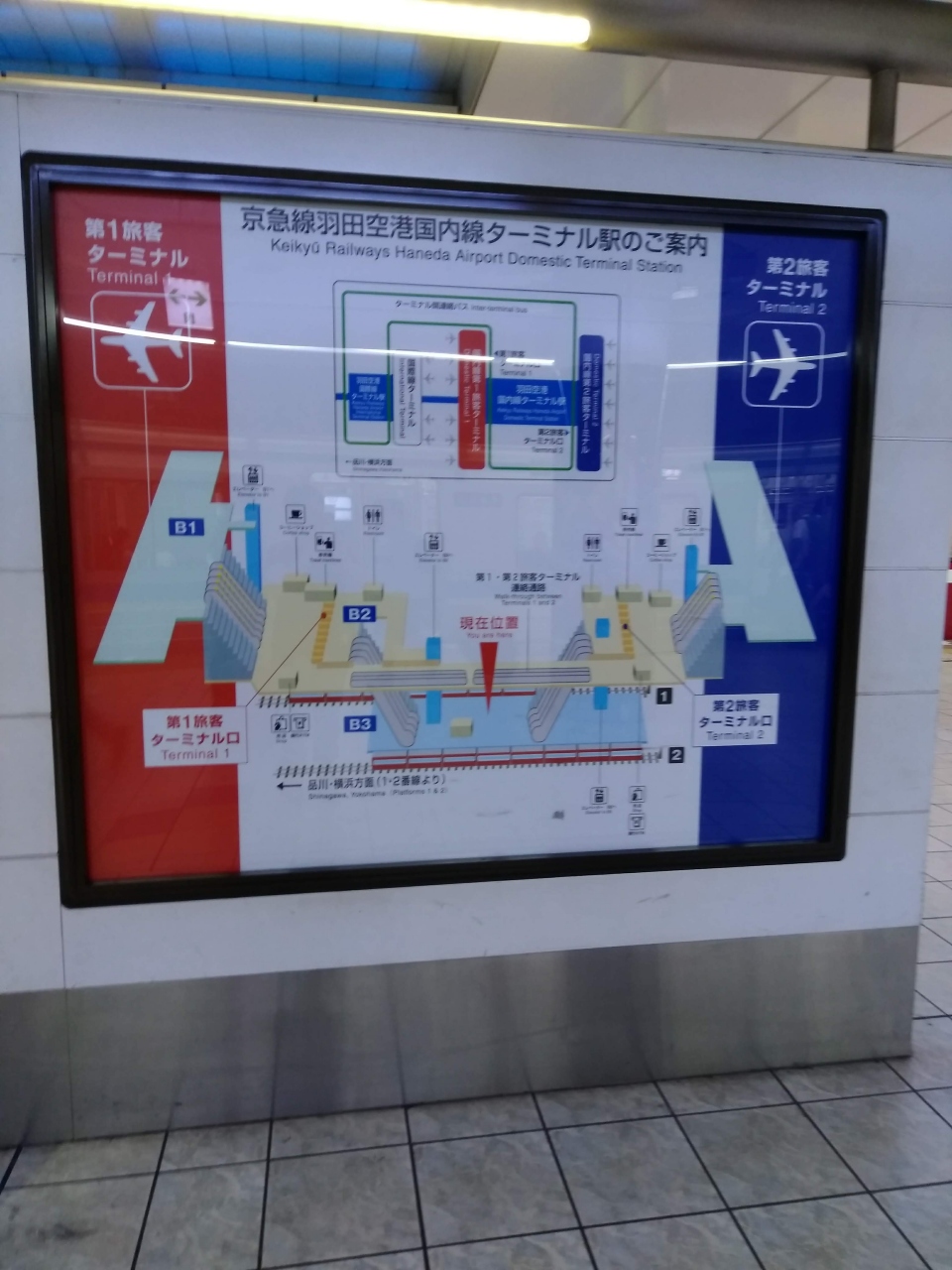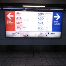 ホームの中央あたりに、利用する航空会社の名前が書かれた案内板があり、その表示に従って改札を出るとスムーズに移動ができます。