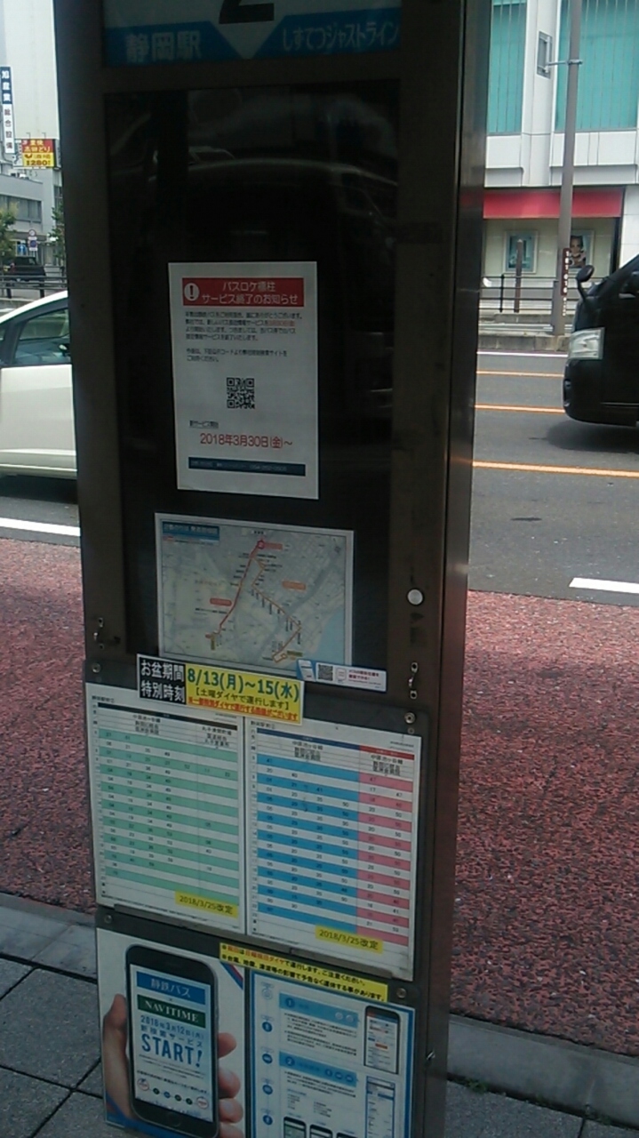例年8月13日から8月15日までの3日間、日曜・休日ダイヤでの運転となりますが、バス停の掲示を見たところ、2018年の場合、土曜ダイヤでの運転となるそうです。
