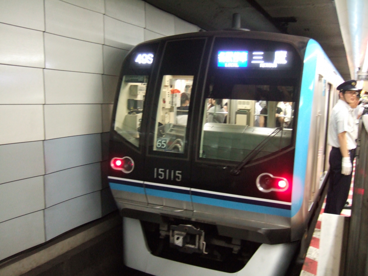 現在の首都圏では最も混雑率の高い路線と言うことで、どの電車も凄い混雑です。ちょうど途中の東陽町止まりが来たので乗りましたが、少し空いていました。日本橋では座ることができて助かりました。