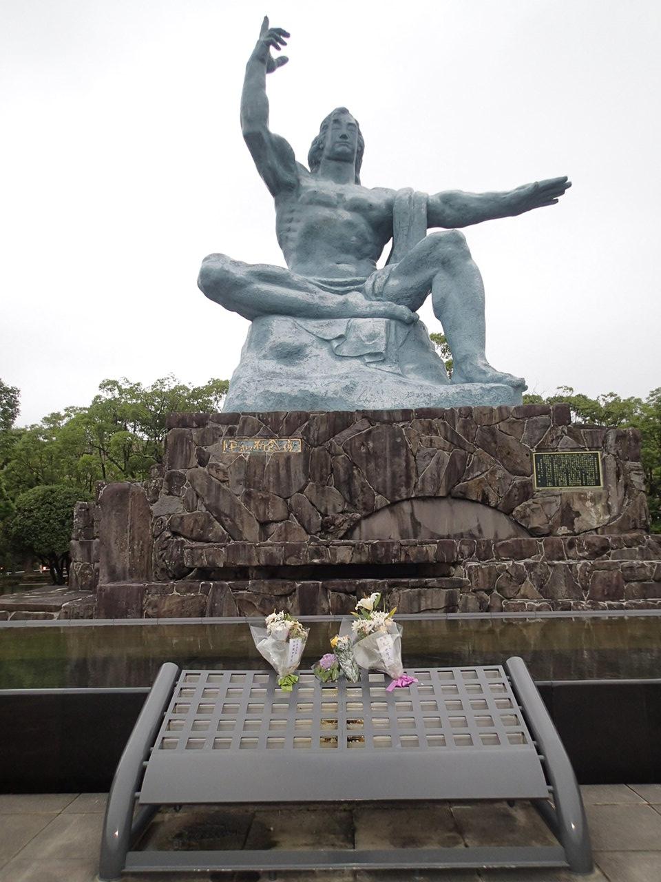 平和公園の細長い敷地内の突き当りに平和祈念像があります。学校の教科書で見た記憶しかありませんが、実物はイメージよりも随分大きいのでびっくりしました。ただ、顔の造りが随分ザツな気がしたのですが、何か意味があったのか、逆に考えてしまいました。