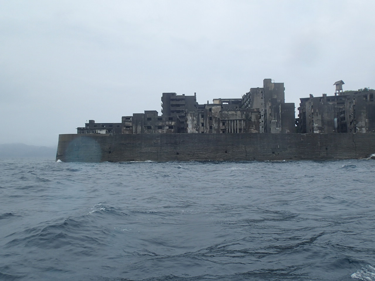 上陸ツァーに参加しましたが、あいにく雨模様ながら桟橋付近の波はわりと穏やかで、これなら上陸できそう、と思いましたものの、残念ながらダメでした。島の付近の波はやや荒れていたものの問題なさそうに見えたのですが。。。船から端島(軍艦島)の姿を見るだけで終わってしまいましたが、確かに変わった形をしており、興味深かったです。