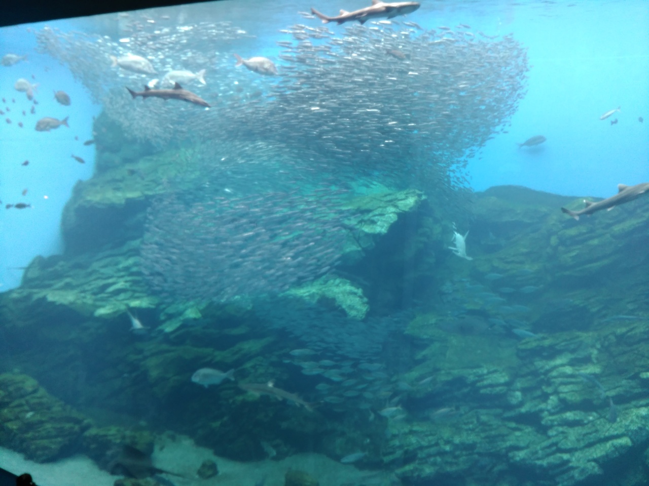 (うみの杜水族館)初めの大きな水槽が見ごたえがあります。魚の群れがまるで一つの生き物のように泳ぐ様はキレイでした。