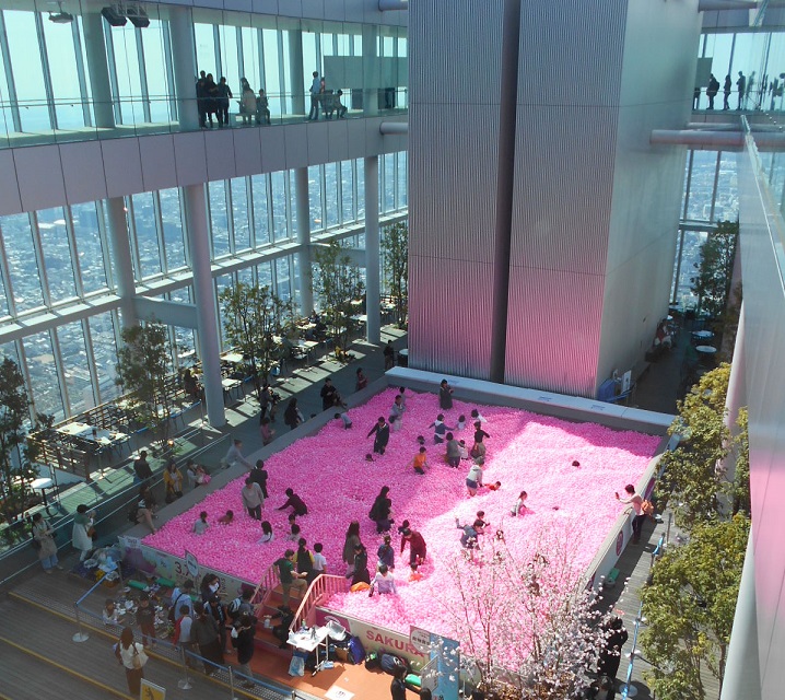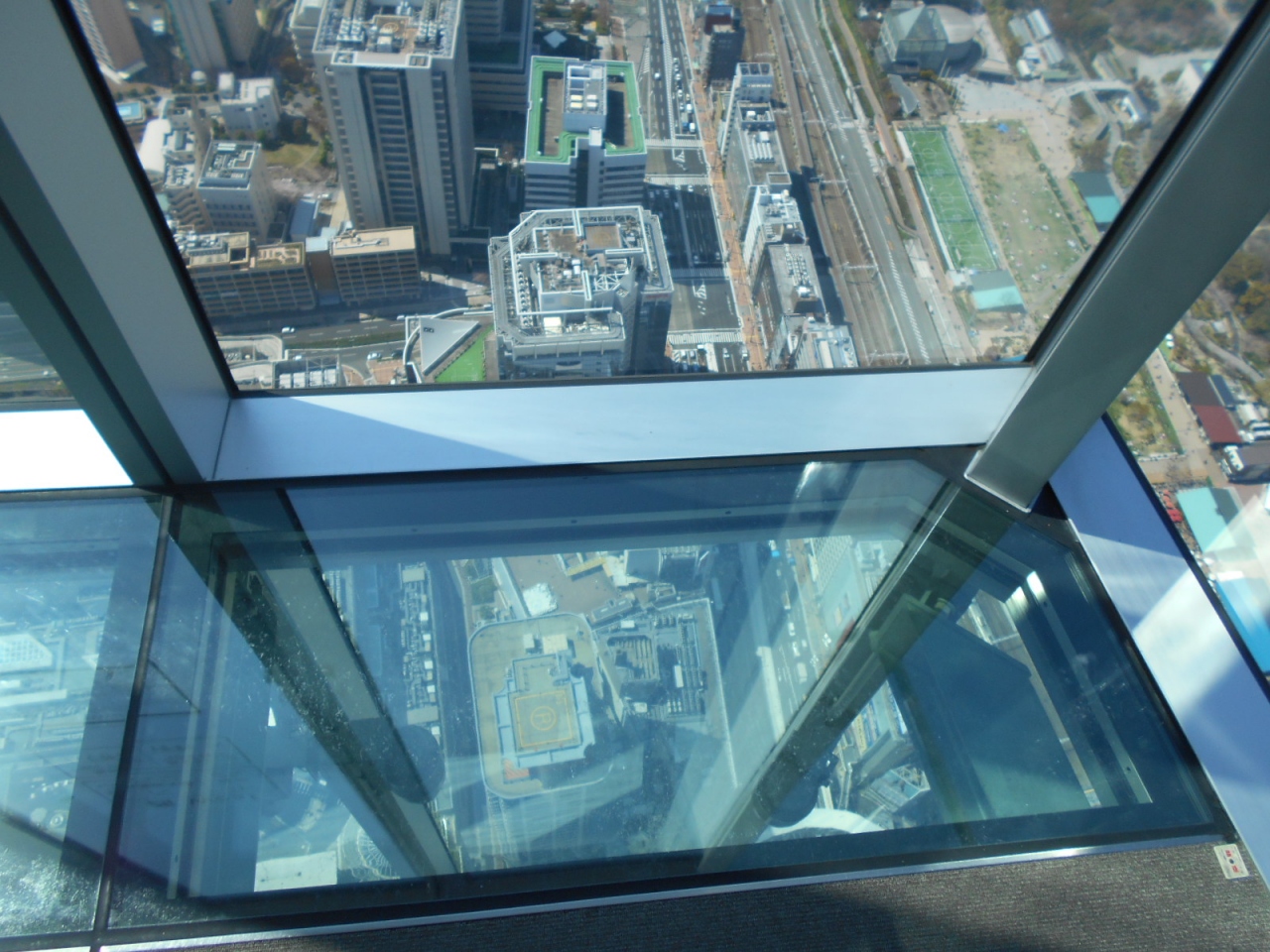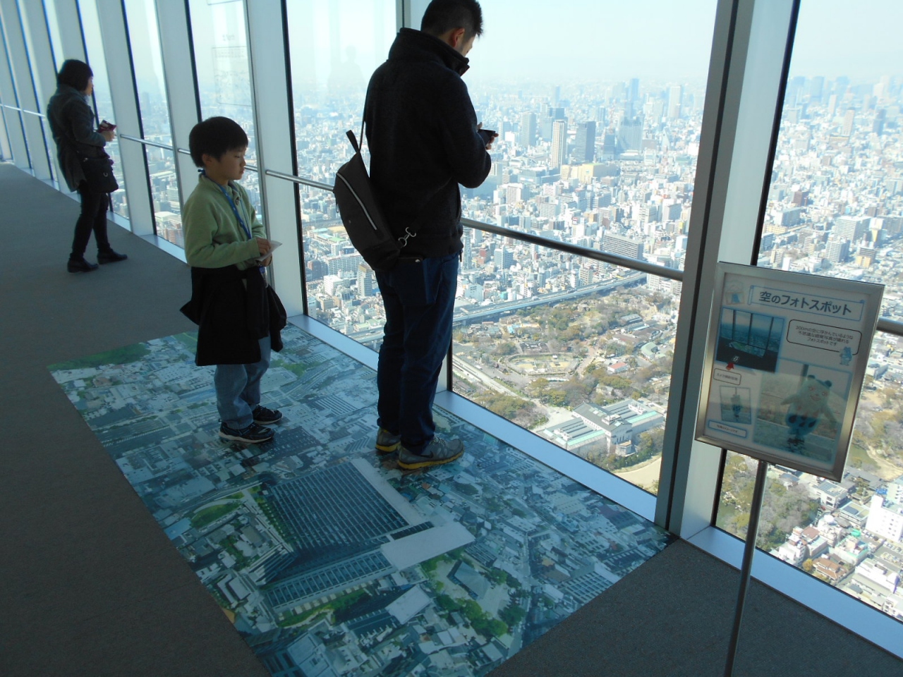 やっと念願達成で来てみると、半屋上の展望施設は、よく研究されており、大都会をビルの屋上から俯瞰することと、地上に対する安全面にこだわりが感じられた。