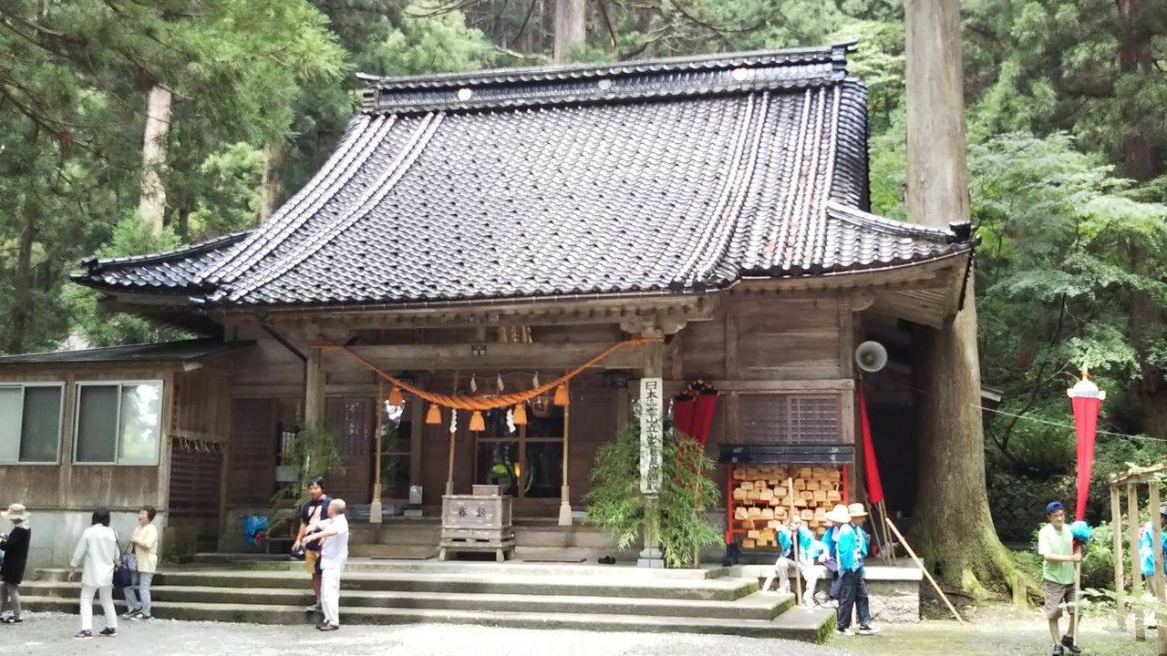 霊峰立山の雄山神社のふもとにある中宮殿に初めて行きました。鳥居から参道沿いに背の高い木立が並び、緑豊かな神社でした。手水所にはきれいな山の水でした。奥の中宮殿の中で御朱印はいただくことができました。ちょうど夏の例祭の準備も進んでいました。