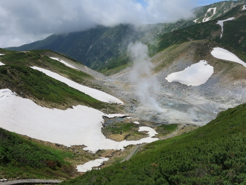 天狗平から雷鳥沢への最短ルートは、この地獄谷の際を通っており、現在は危険なため閉鎖されています。