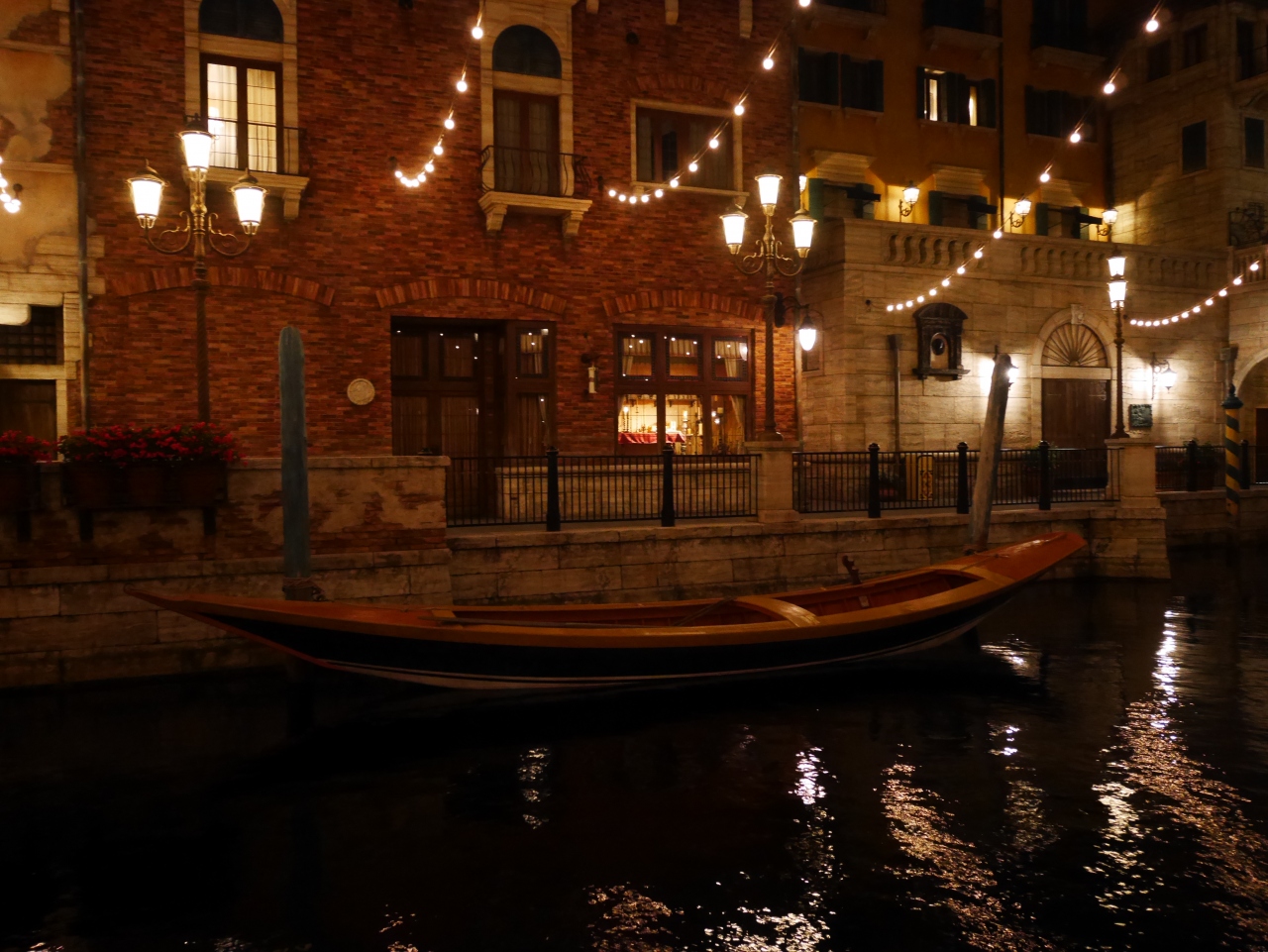 パラッツォ・カナルに再現されているヴェネツィアの運河をゆっくりと進み、ポルト・パラディーゾの海へ。