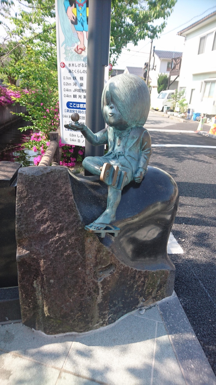 ゴールデンウィークに境港に来たときに、水木しげる記念館に行く際、水木しげるロードに行きました。このとき行ったときはリニューアル工事中だったため、一部が工事中の部分もありました。しかし、それでもゲゲゲの鬼太郎のキャラクターのブロンズ像が数多くありました。