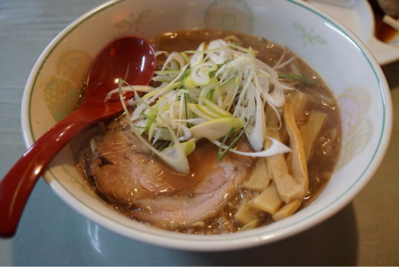 野菜をたっぷり煮詰めているらしく、深夜という時間に合うあっさりした味がベース。だが、ここに正油のコクや背脂の甘さが追加され、何より焦がしの風味に食欲がそそります。かんすい入りの黄色い麺はストレートの麺。こちらもなかなかの食べ応えだ。