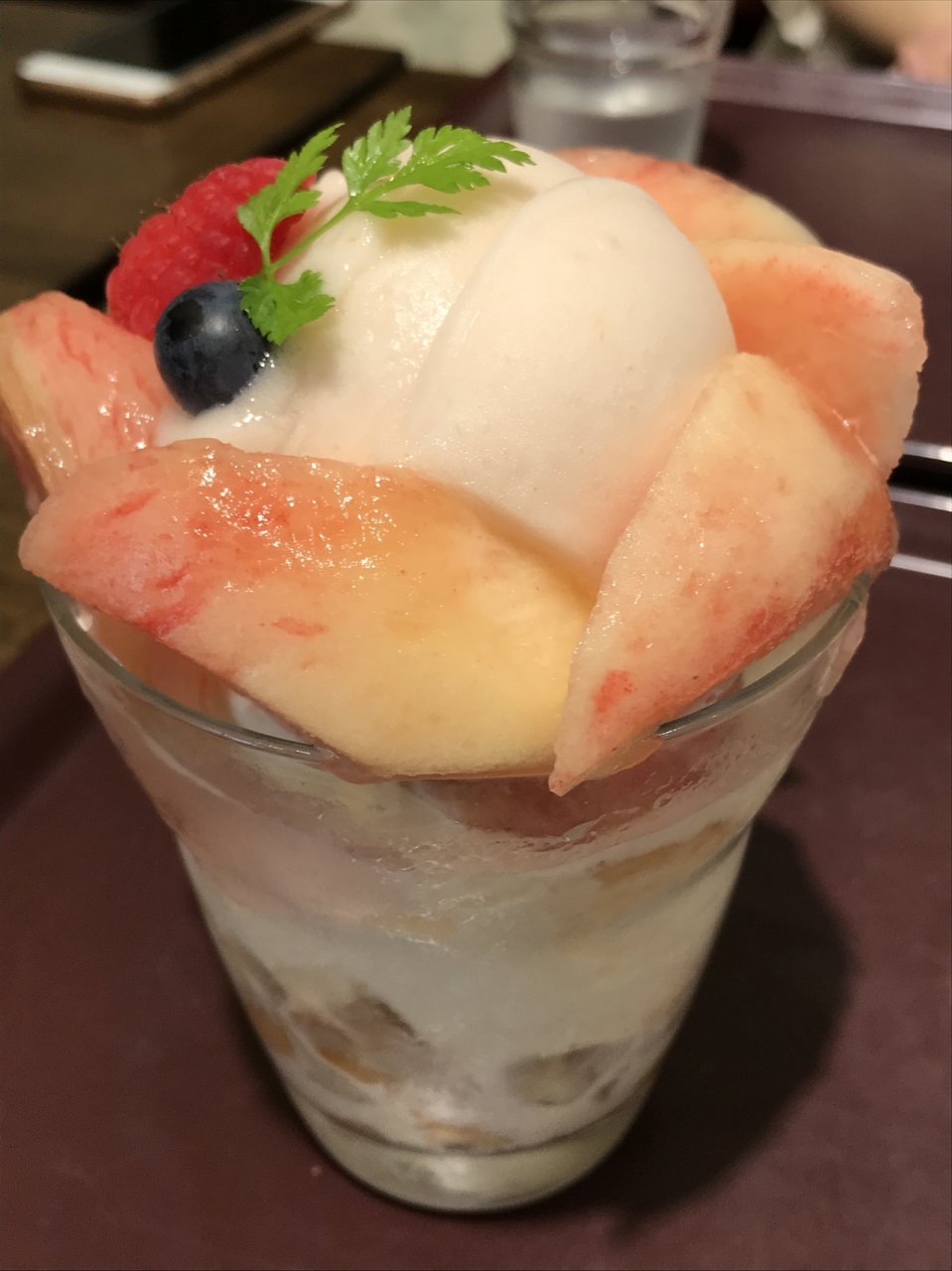 「モモがおすすめ」ということで「ももパフェ」をオーダー。