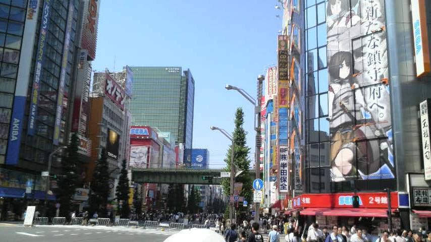 電化製品に加えアニメ・ゲーム関係のお店が増えてるせいか、壁面にデカデカと描かれたキャラクターをあちらこちらで見ることができ、秋葉原らしい独特の街並みを演出していました。