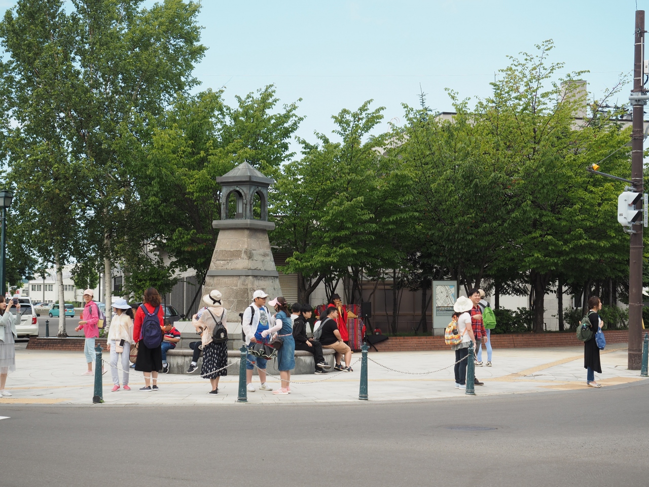 オルゴールの店、小樽硝子の店、洋菓子店など、小樽の食べる・買うの店がずらりと並んでいるちょうど折り返し地点にある交差点です。