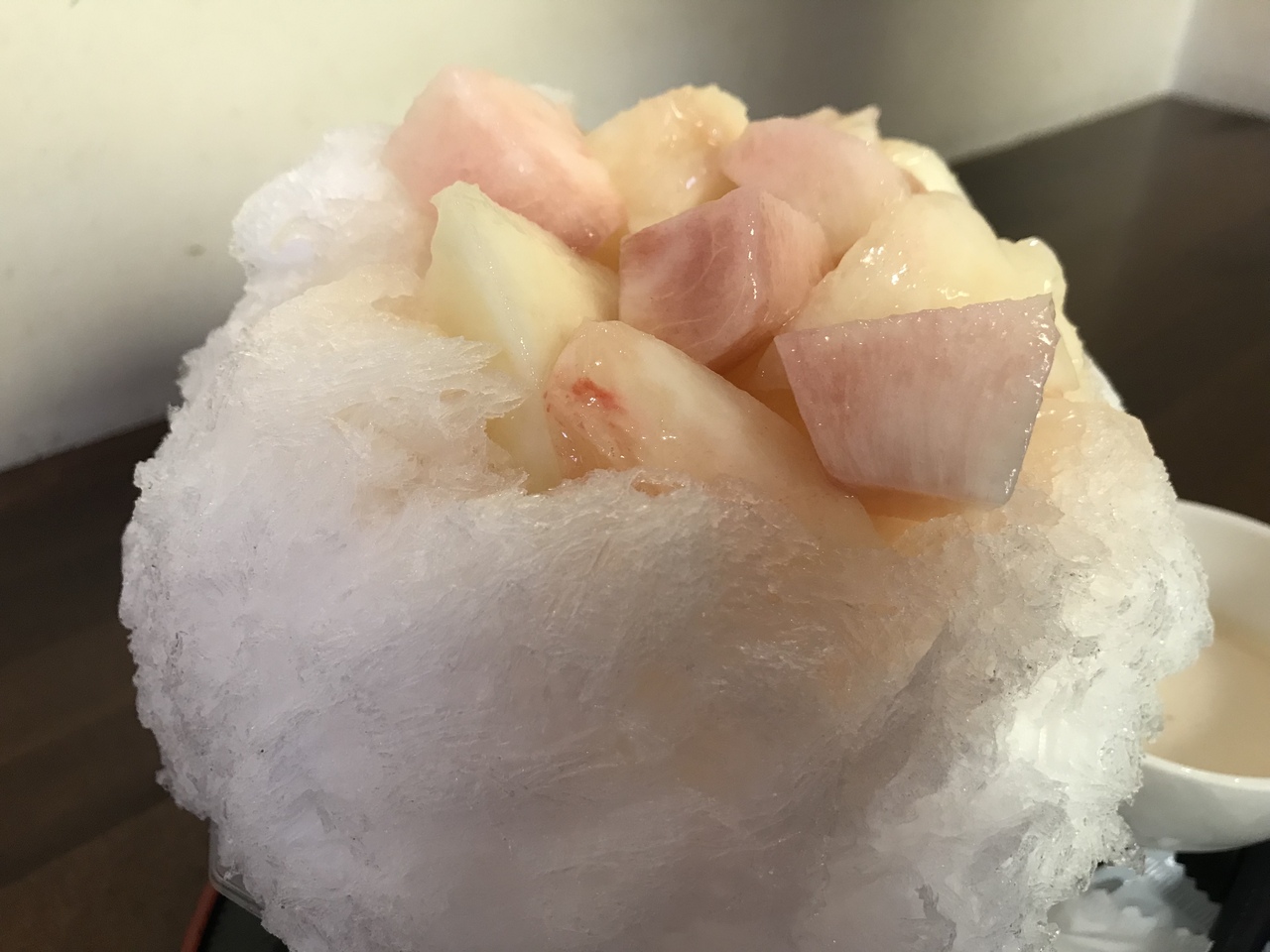 たい焼きとかき氷が有名なこちらのお店。今年も夏はこちらのかき氷を楽しみにしてました。人気というエンジェルヒップを注文。生桃のカットがゴロゴロ乗っかっていて、シロップはジンジャー。面白い組み合わせですがさっぱりしていて美味しいよく合う!オプションで付けたクリームチーズシロップがまた美味しい。大きいかき氷ですが、ずっと飽きずにペロッと食べられました。