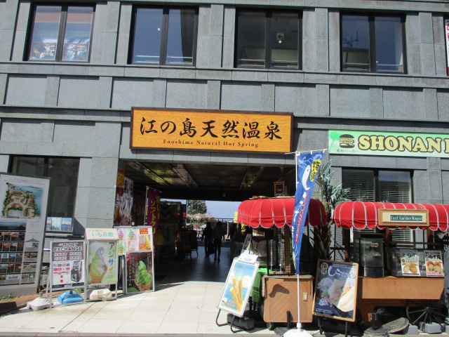 小田急江ノ島線片瀬江ノ島駅から境川にかかる橋を渡って右折し地下道を通り弁天橋を渡って江島神社参道入口右手にある江の島アイランドスパに歩いて12分ぐらいで着きます。江の島アイランドスパは天然温泉で地下から温泉水を汲み上げているそうですのでゆっくりと温泉に浸かり身体の芯まで温まるとリフレッシュでき疲れが吹っ飛びます。利用料金は高めですが施設から湘南の海や富士山を眺めながら過ごすこともできますので江ノ島観光の際はお立ち寄りお勧めします。夕日が海岸線に沈む眺めは最高です。