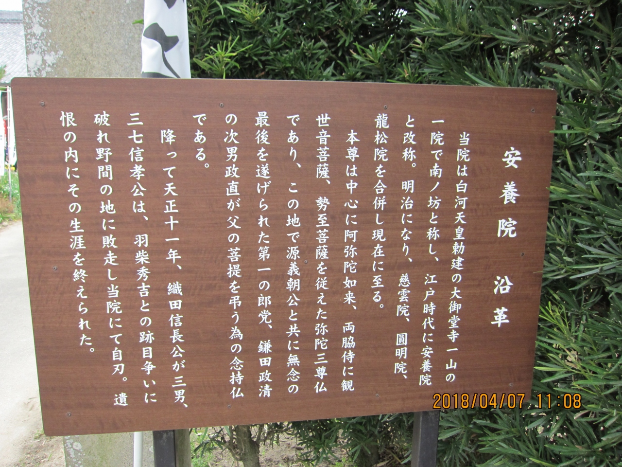 真言宗豊山派のお寺です。 ご本尊は、阿弥陀如来です。 ここは、織田信孝(織田信長の3男)が自刀した最後を見とどけたお寺です。 織田信孝の辞世の句は、「むかしより主をうつもの野間なれば報いをまてや羽柴ちくぜん」だそうです。 秀吉に滅ぼされた、織田方の無念が、とてもよく伝わってきます。 知多四国巡拝では、様々な歴史を感じました。