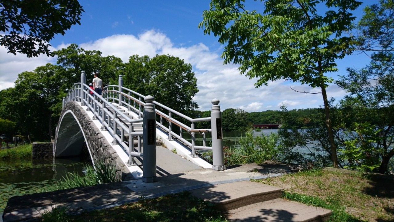 公園内には3つの散策路があり、島巡りの路では島を結ぶ大小様々な橋を渡って約50分でぐるっと一回り、様々な角度から大沼を楽しむ事ができます。