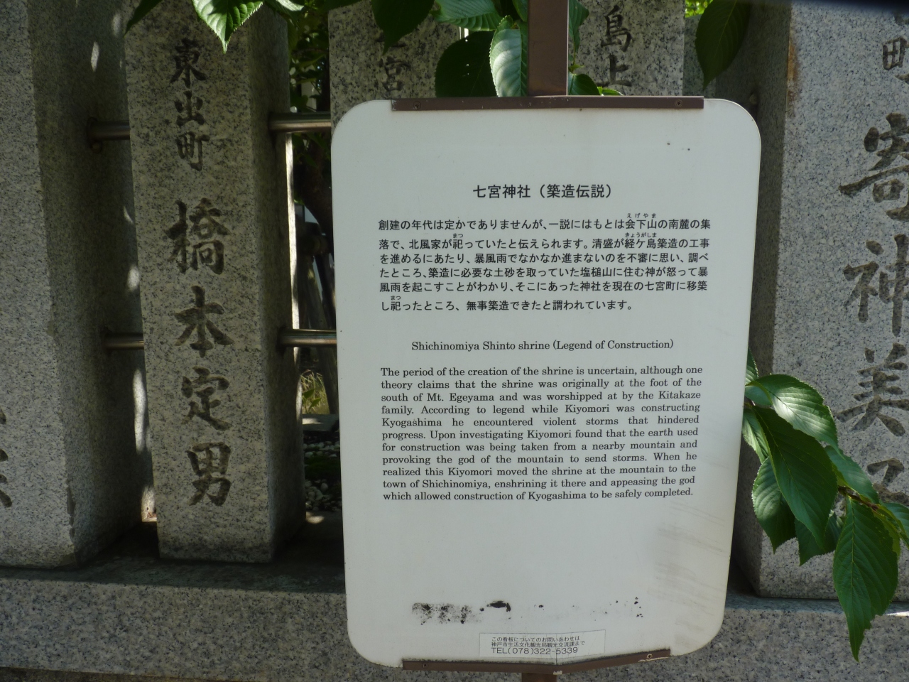 国道2号線の角地にあり,七宮交差点の南側にある。下の神社をこの場所に移動したらしい。八宮神社めぐりの一つになっているが、普段はひっそりと静まり返り、おとずれる人もほとんどなく、私達がおとずれたときも地元の方が静かに参拝され静寂そのものであった。宮の入り口に当社のいわれを書いた看板が立っている。