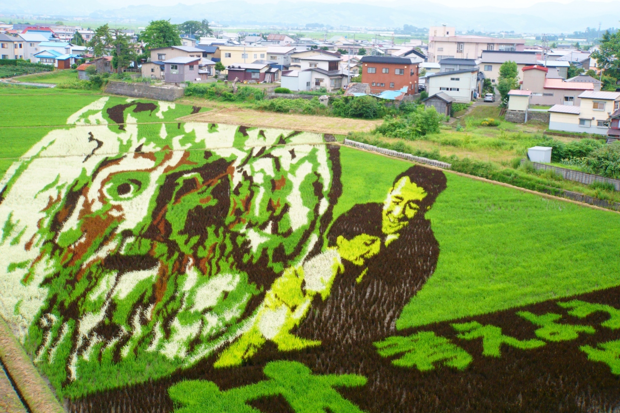 あまり期待していなかったのですが,展望台からの田んぼアートの眺めは壮観でした.各会場300円で入場できます.これまでの歴史が写真で展示されているので,それを見ると田んぼアートが年々進化しているのがよく分かりました.