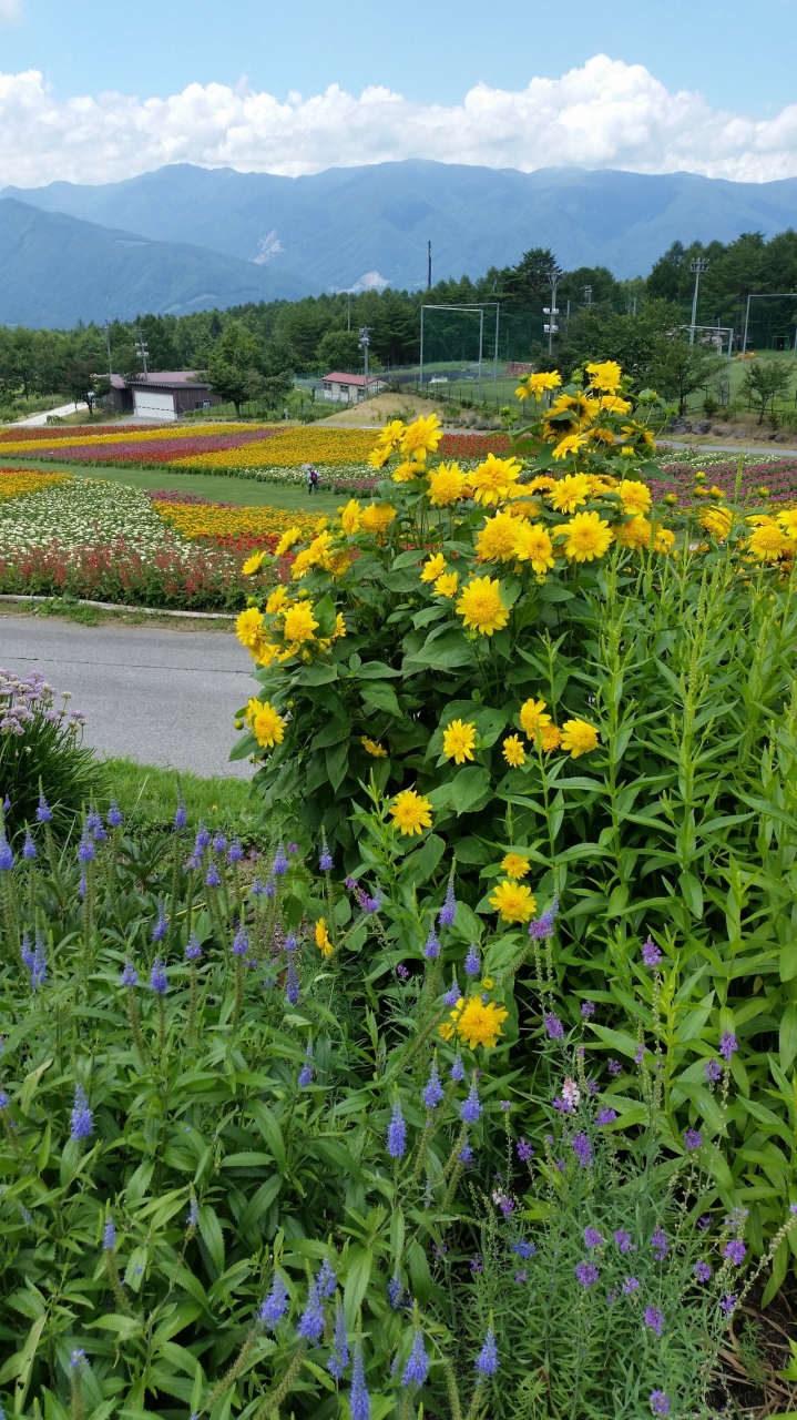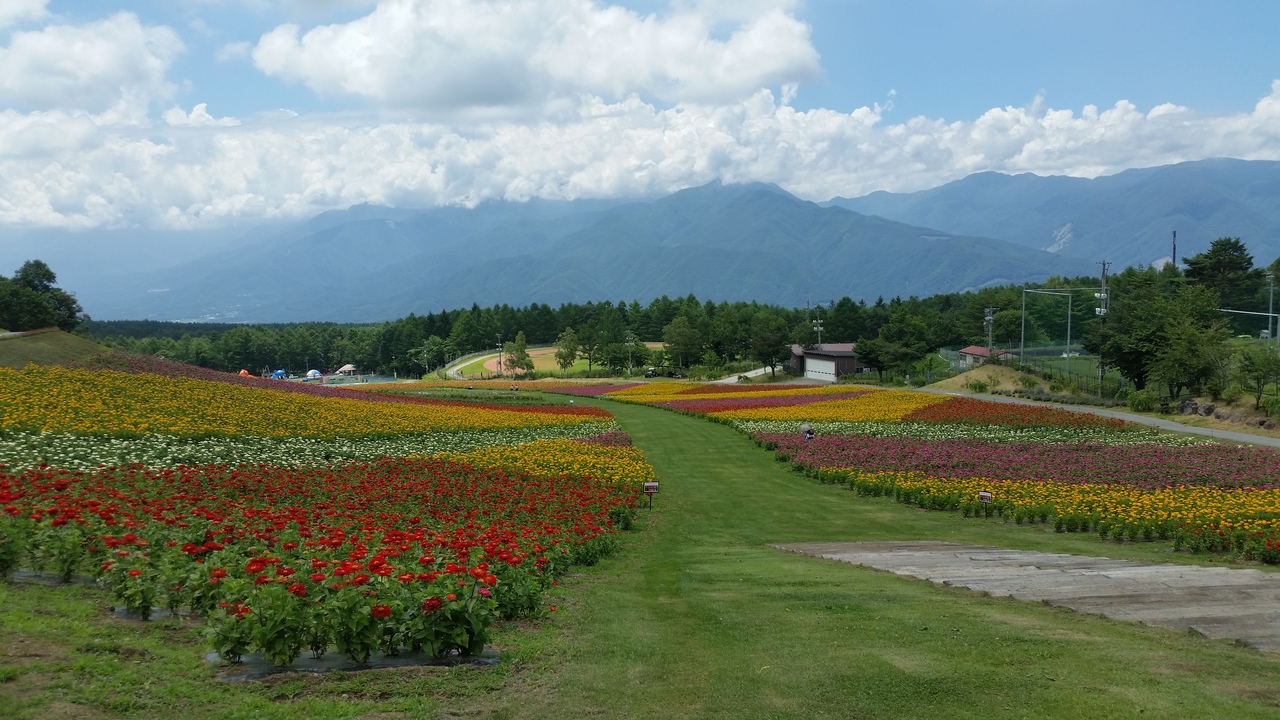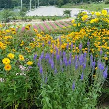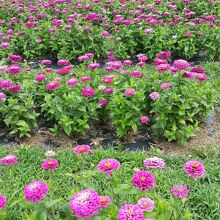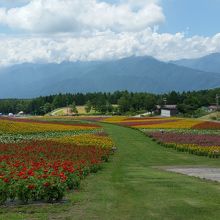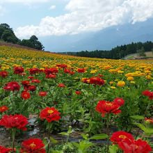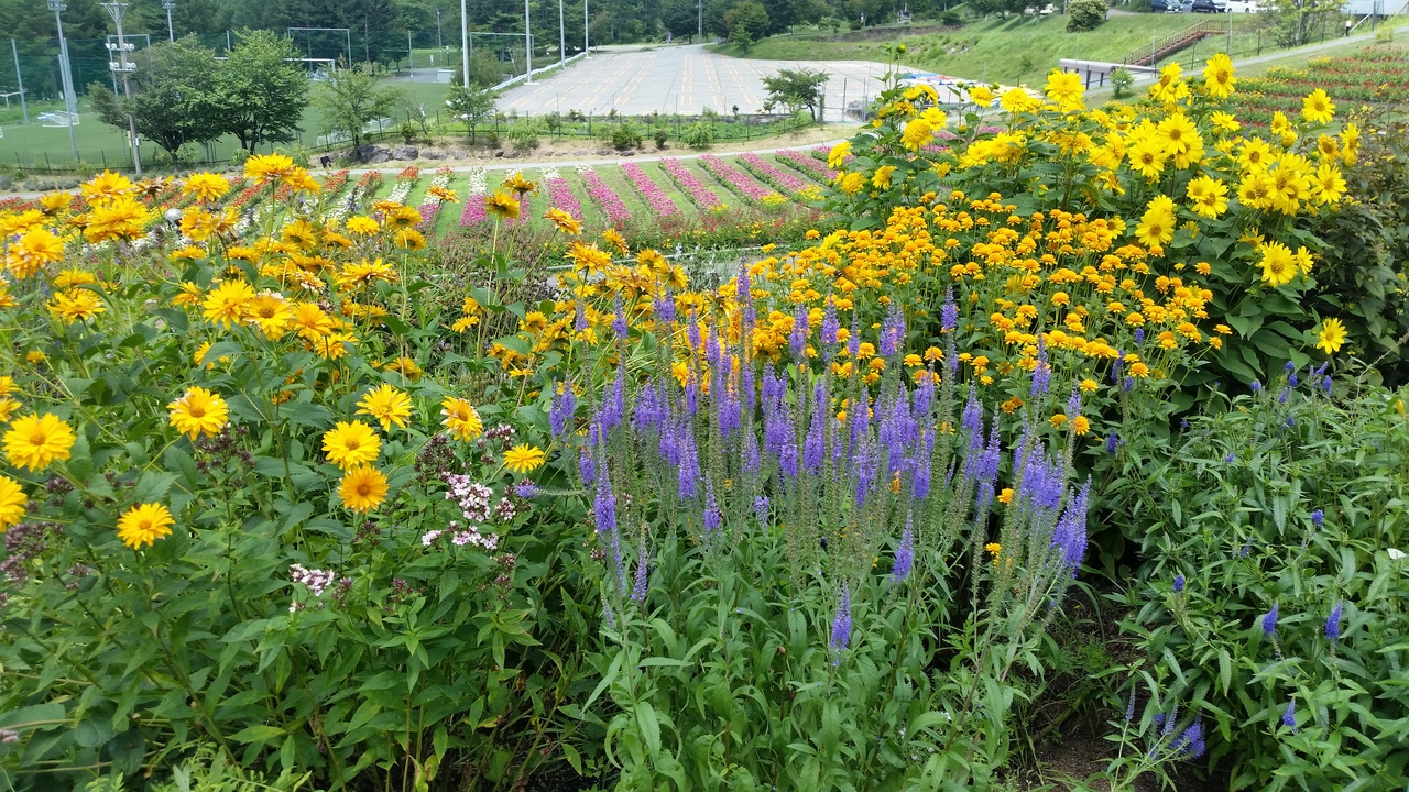 また、夏場はスキー場のゲレンデを利用し、お花畑がオープンします。100万輪の百日草をはじめ、サルビア、ケイトウ、ヘメロカリス(キスゲ)など、一面がお花畑になります。