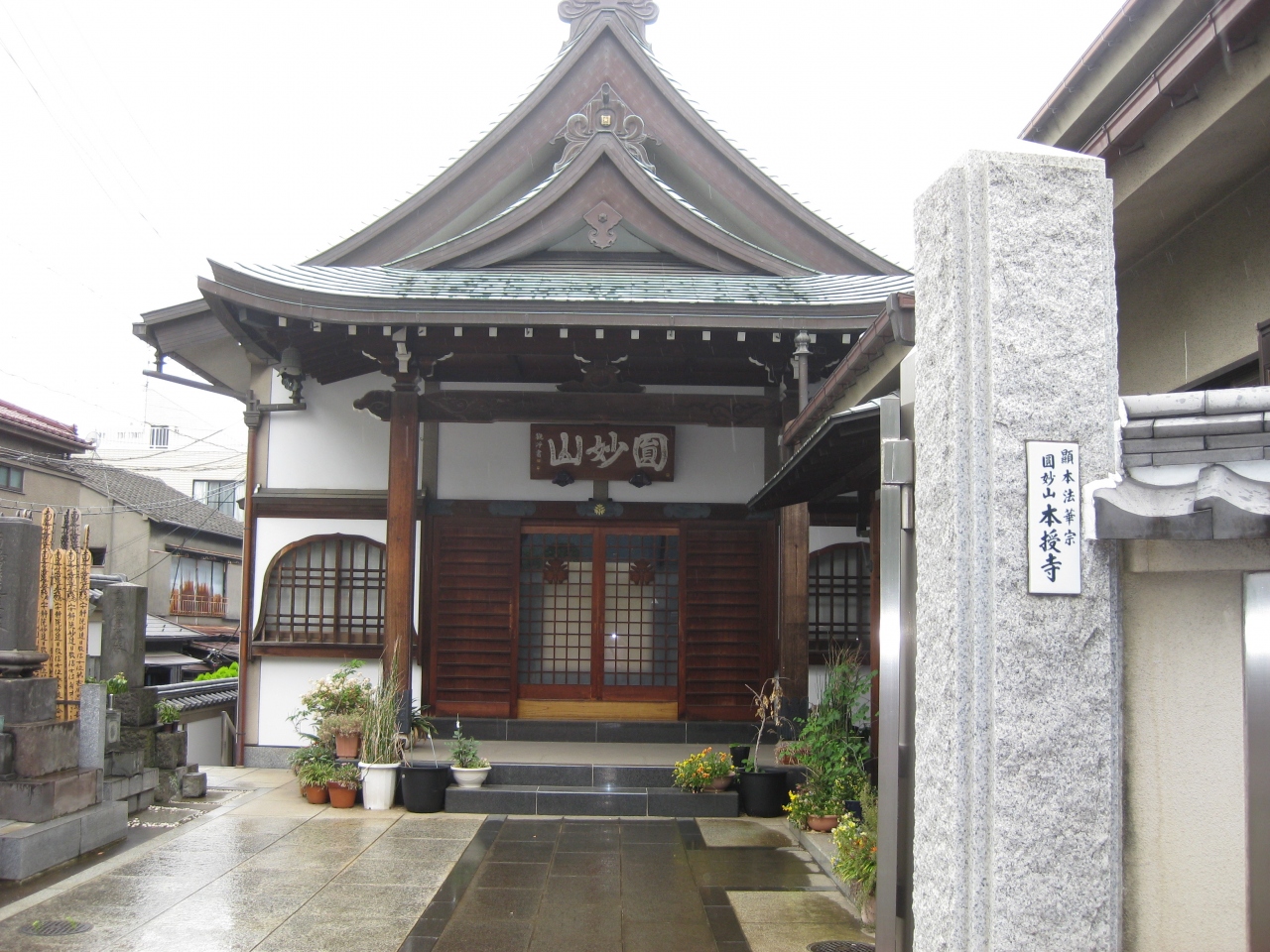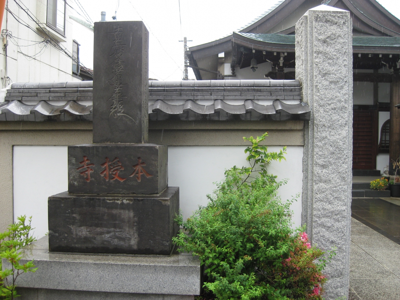 谷中銀座上の夕焼けだんだん前東へ行った直ぐにある顕本法華宗寺院。本授院日音開基で寛永5年(1628年)創建です。山門も本堂も普通の寺で特別の印象はありません。境内の本堂前に墓がありました、境内も狭く観光で巡る寺院ではありません。