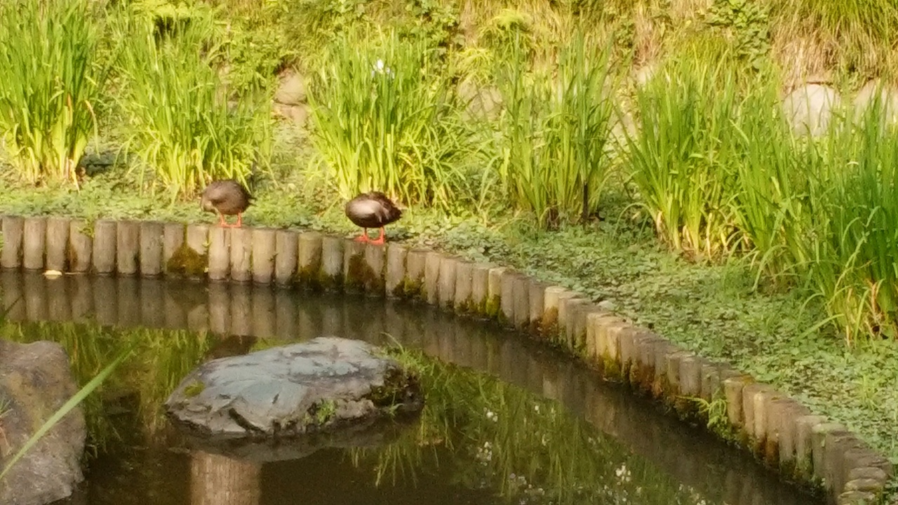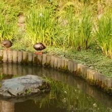 芝や植木が良く手入れされていて、とても気持ちが良いです。鴨や白鷺なども居て和みます。