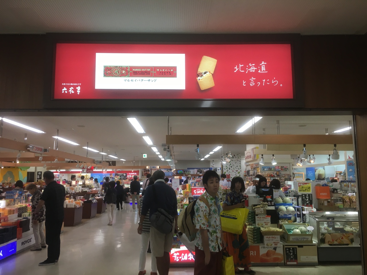 帯広空港内のおみやげ屋さんです。同じような土産屋が7件ほど入居していて、どこで会計すればいいのか困惑してしまいます。