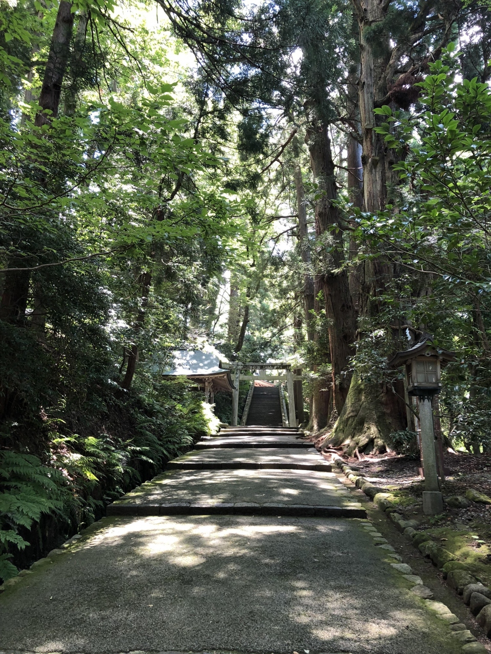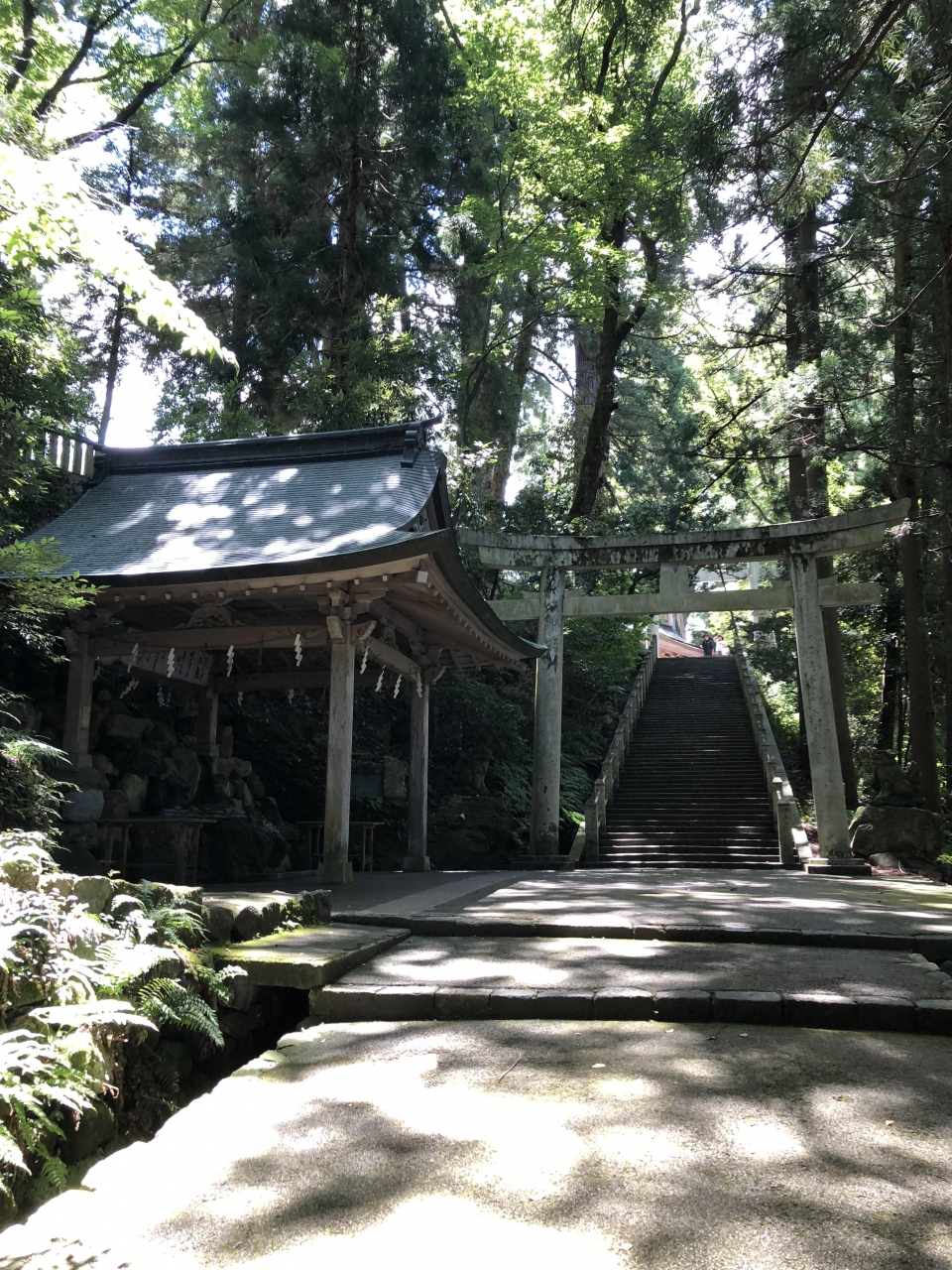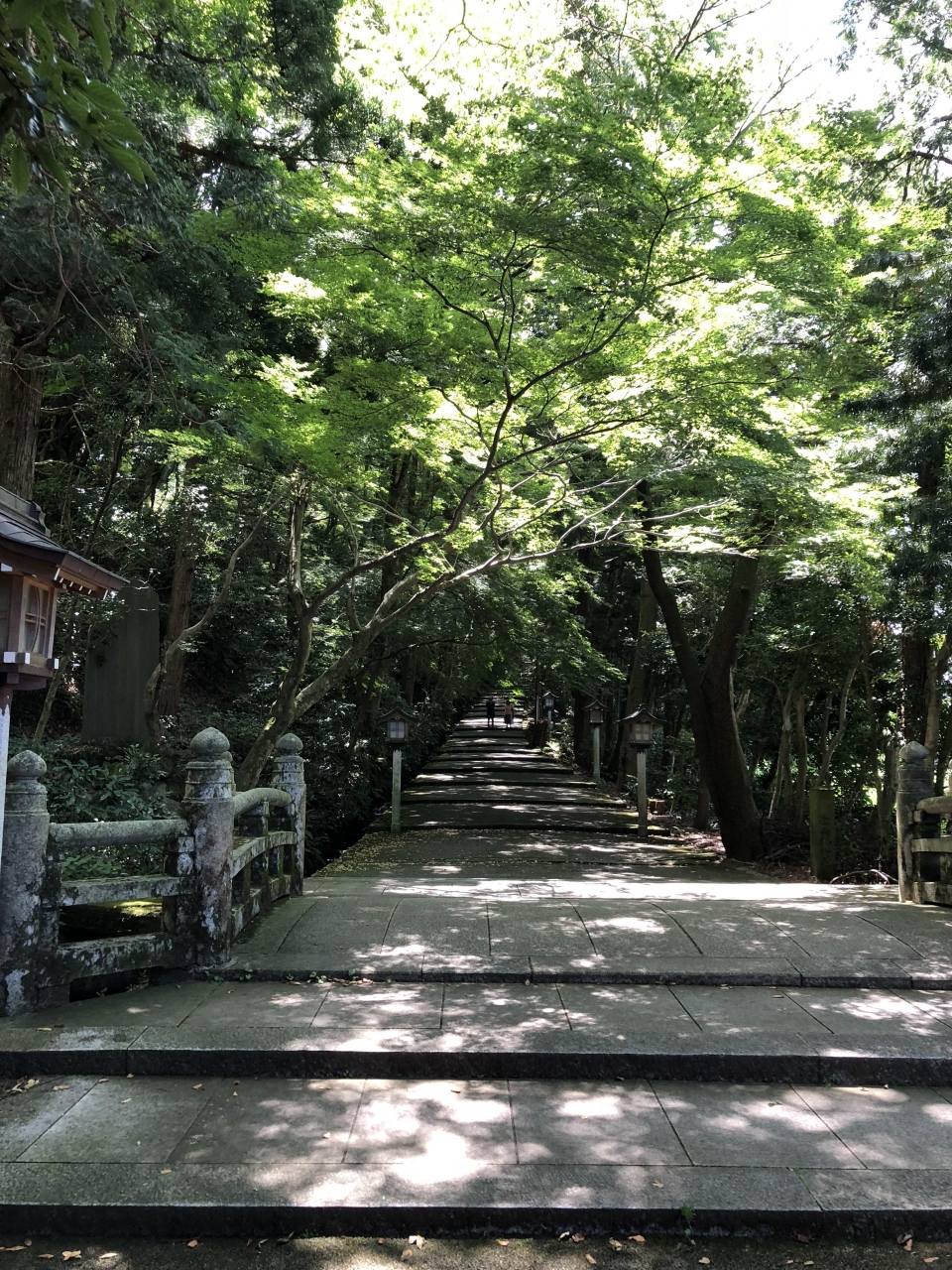 表参道は大きな樹木に覆われているので太陽の日差しは和らいで当たり約250m続きます。