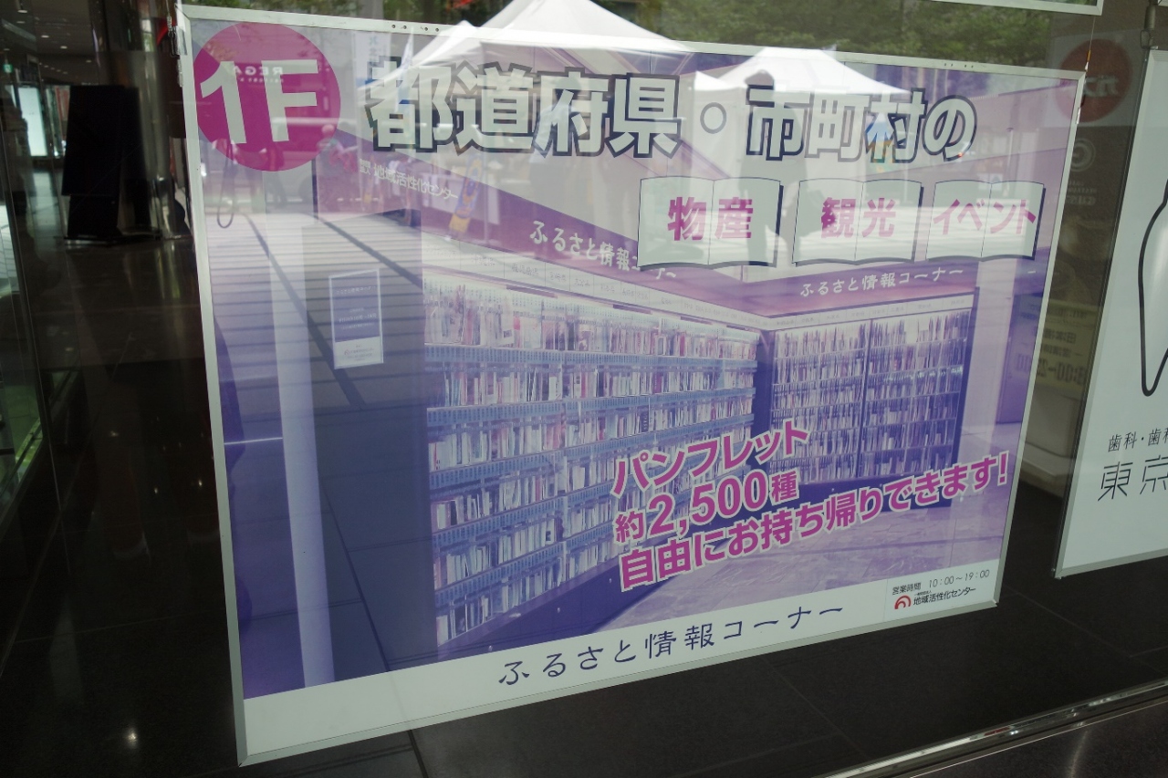 東京駅の八重洲口側から日本橋高島屋の方向へ抜けることができる桜通り沿いに有る日本橋プラザビルにこちらの情報コーナーが有りました。全国各地のパンフレットが置いてあり、興味ある場所の情報を読んでいたら旅行へ行った気分になりました。
