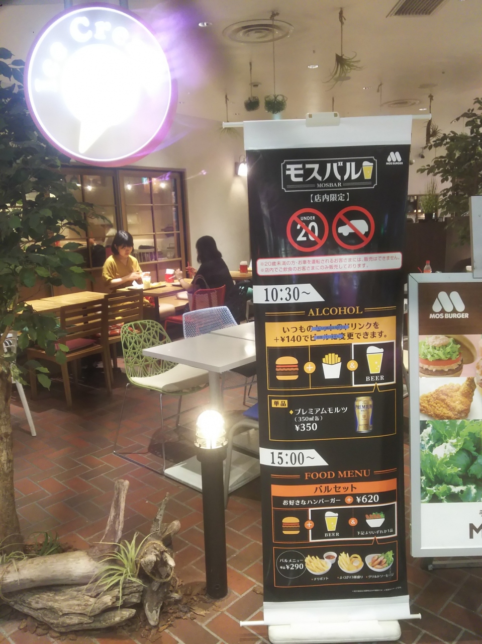関西国際空港内にあるミスドとモスのコラボ店に行きました。この店の存在自体知らなかったので、驚きました。さらにアルコール付きのセットメニューもあり、空港特有なのかなと感じました。モスならともかくミスドとビール…ビミョーに合いませんでした。