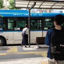 川崎市全域をはしるバスで、青いカラーリングが目印。PASMOがあれば一日乗車券を載せることもできます。本数は結構あるので、観光にも便利に使えます。定期券などの販売所はノクティにもあってここで各種案内や路線図つきの地図をもらうことができます。ただ、路線図つきの地図は印刷する数に限りがあるので、用意されていないこともあります。