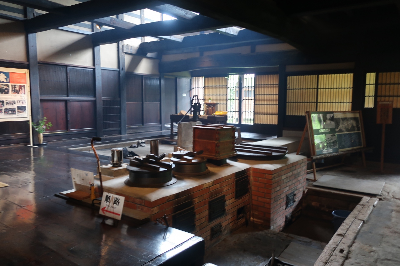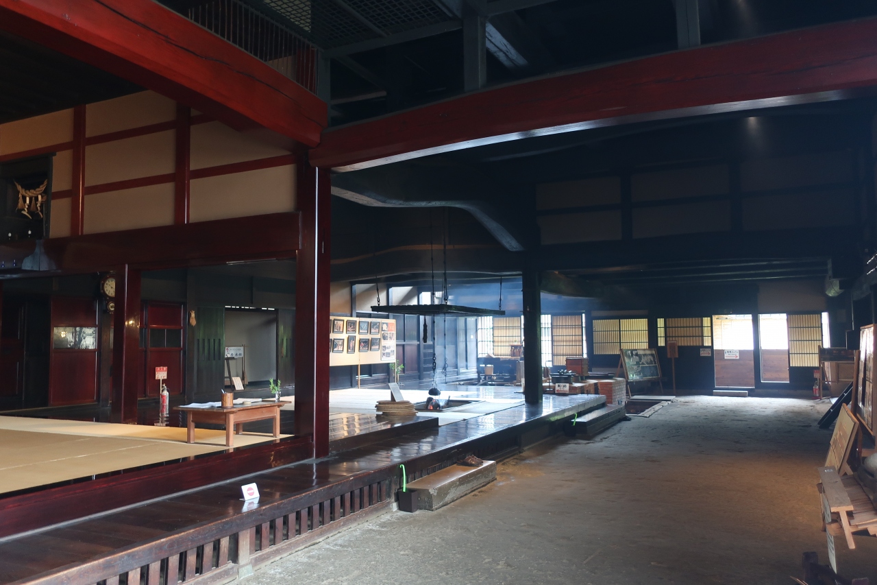 旧米沢街道沿い、関川村役場の正面に豪農・大庄屋であった渡辺家の邸宅があります。石置木羽葺屋根撞木造りの特徴的な屋根を持つとてつもない邸宅で、中に入ると見たこともないような広い土間が奥に伸びあっけにとられました。これまでに幾つもの邸宅を見て居ますが、これほど広い土間はみたことがありません。それだけではなく、遠州流の庭園、6つもある土蔵など、これぞ豪農と言った感じの邸宅です。