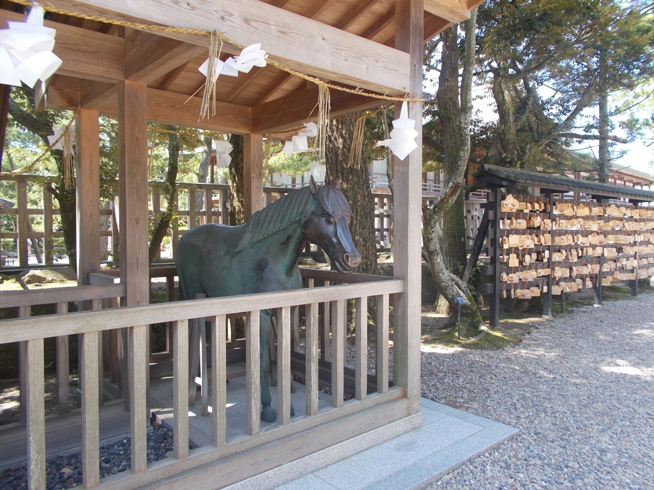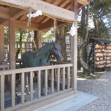 出雲大社内にある神馬、神牛の像です。神馬は安産、子宝、神牛は学問にご利益があるそうです。撫でるとご利益があるので撫でてみました。鼻のあたりがピカピカになっているので撫でる場所がわからないことはないと思います。