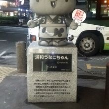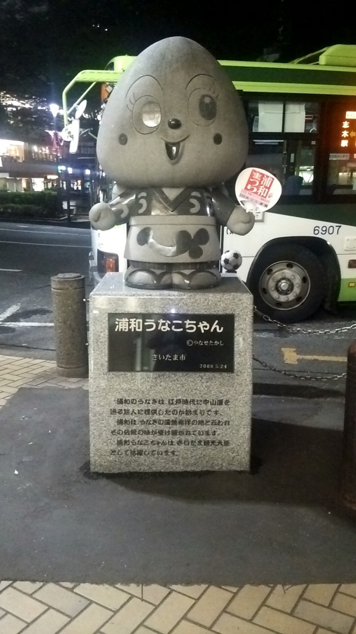 何時も浦和駅を利用しています。浦和駅の周辺は禁煙地区となっていてたばこが吸えません。西口の伊勢丹の前に壁に囲まれた喫煙所がありよく利用しています。そのとなりにうなこちゃんの像があります。今は季節柄うちわを持っています。