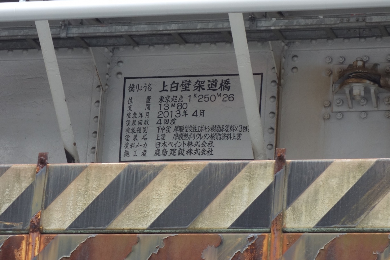 神田駅の周辺には多くの架道橋や高架橋がありますが、こちらもその一つです。上白壁架道橋はちょうど神田駅に隣接しているため人通りが多く、駅を利用する人にとっては馴染みのある場所になります。飲食店は営業していますが、ちょうど付近が工事中でシートで覆われている部分が多かったです。
