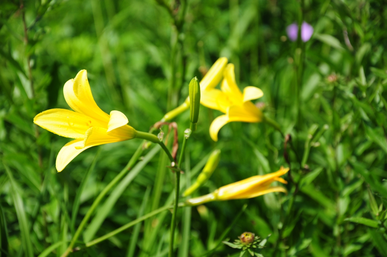 北海道の原生花園というと、サロベツ、ベニヤ、ワッカ、以久科、北方、あやめヶ原、豊北など数多いが、原生花園駅があるのはここ小清水原生花園であり、北海道原生花園と代表格である。広い無料駐車場がインフォメーションセンターの西側と東側の両方にある。原生花園、展望台、駅舎には東側が近いが、トイレには西側が近い。駅の横の踏切を渡って行くと、色々な花が咲いている。原生花園なので派手さはないが、質素そのもののサロベツ原生花園などと比べると随分派手といえる。展望台からはオホーツク海とトウフツ湖の双方の眺望が見られる。