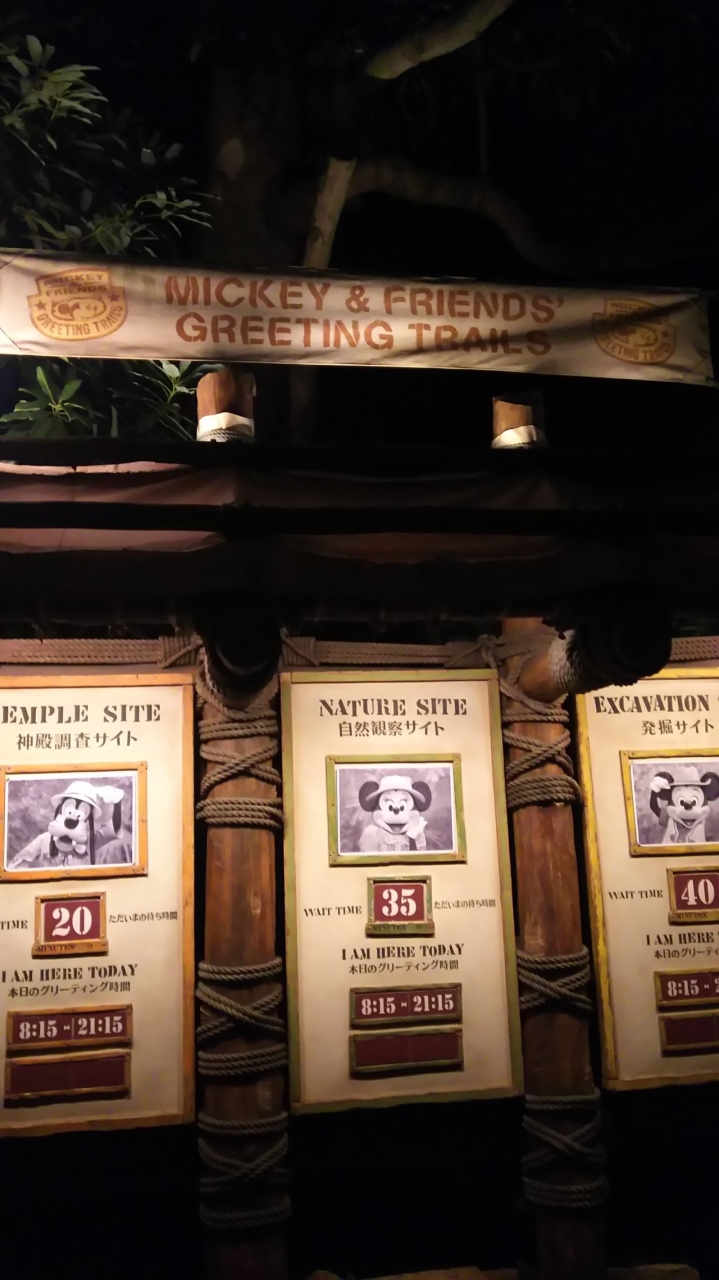 ミニーとグーフィーに並び、グリーティングしました。サインも書いてくれますし、写真ももちろん撮ってくれます。自分のカメラは1グループ1枚、キャラクターのピン写真も1枚に含まれますので要注意です。